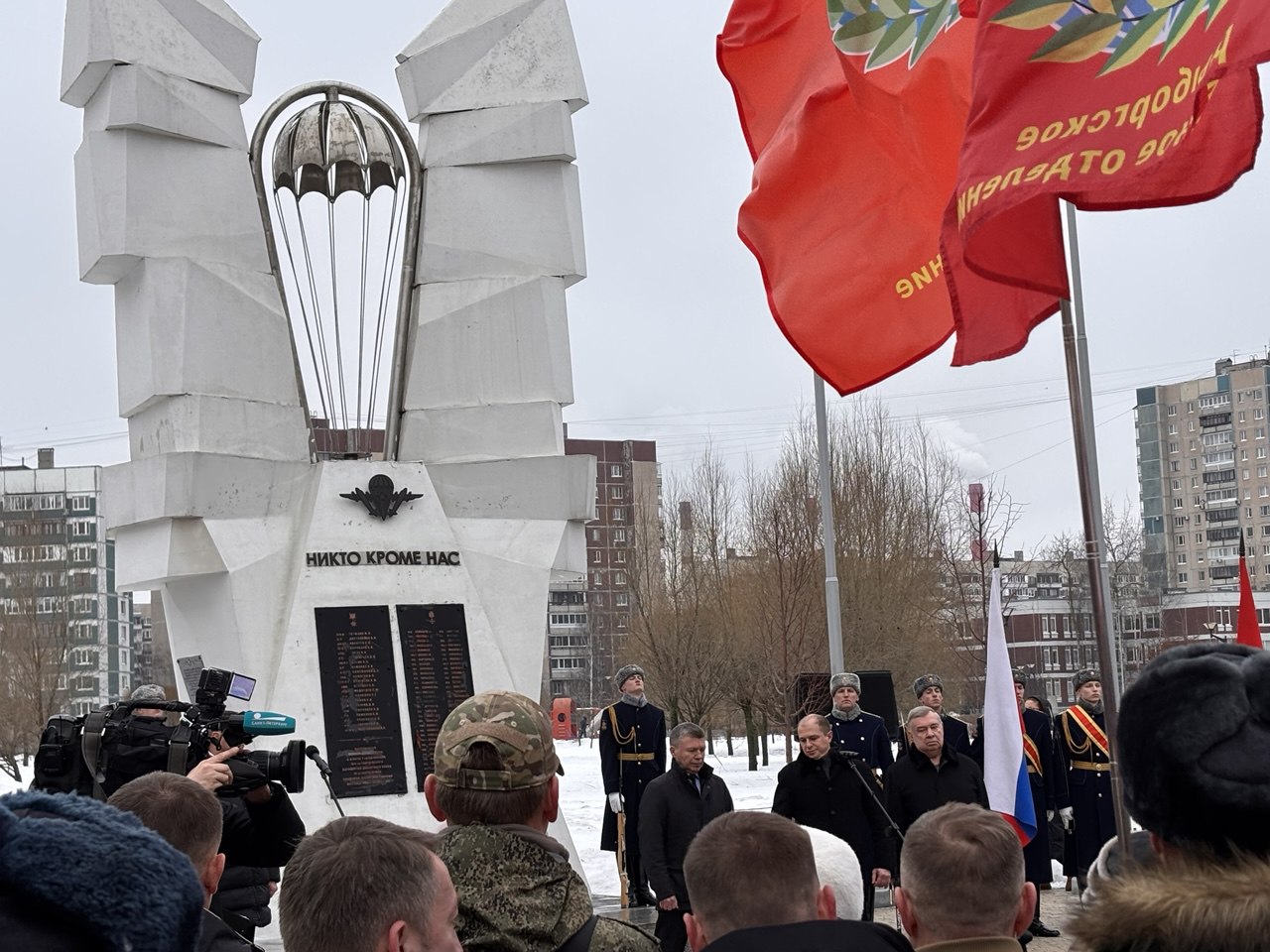 Сегодня в парке Боевого Братства в Невском районе Санкт-Петербурга состоялась торжественно-траурная церемония, посвящённая 26-й годовщине подвига воинов-десантников.