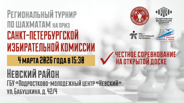 Региональный шахматный турнир на приз Санкт-Петербургской избирательной комиссии пройдет со 2 марта по 5 апреля 2026 года